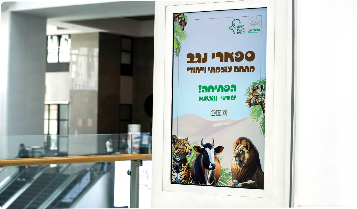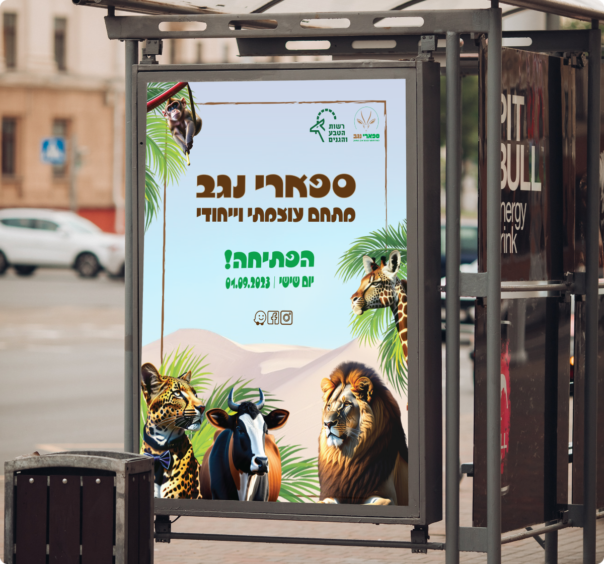 עיצוב קמפיין מיתוגי עבור הספארי החדש שעובר לנגב אשר יפנה לקהלי יעד רבים כמו ילדים והורים, תיירים וחובבי בעלי חיים, כלומר קהלי יעד רחבים ככול הניתן.
